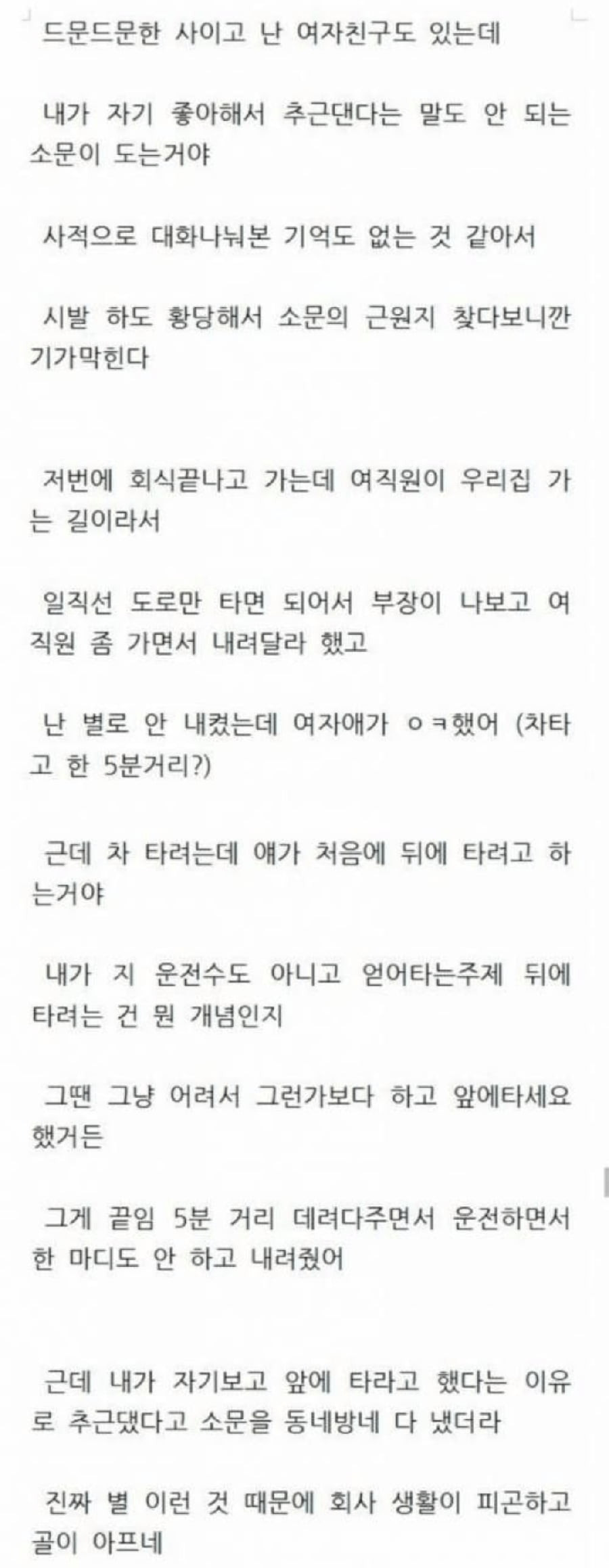 회사 여직원이 내가 추근덕 거렸다고 소문냄